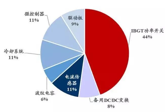 电动汽车电机控制器通过对转矩、转速和转向进行控制,一方面可以提高电动汽车的驱动控制水平,保证电动汽车的高效、稳定运行,增加电动汽车的行使里程。在新能源汽车领域,电机控制系统IGBT应用于逆变器中,占整个控制器成本的40-50%,是电控核心模块。