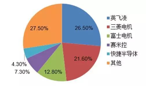 IGBT模块在新能源汽车驱动中作为大功率高频率开关使用,对各项性能指标要求极高,对可靠性要求更严格,其成本能占到新能源整车成本的10%。大陆现在的IGBT等功率元器件大部分依赖进口,90%主要依赖进口,进口替代空间巨大。日德企业称霸全球,日系方面,三菱及富士等日系企业实力强劲,德系的英飞凌也是全球IGBT龙头企业之一。