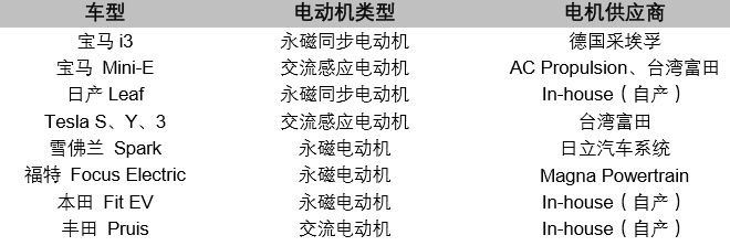 图表3:国外主要新能源汽车电动类型及供应商情况