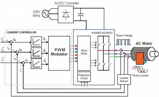 1、基本结构 交流伺服电机主要由定子和转子构成。 定子铁心通常用硅钢片叠压而成。定子铁心表面的槽内嵌有两相绕组,其中一相绕组是励磁绕组,另一相绕组是控制绕组,两相绕组在空间位置上互差90°电角度。工作时励磁绕组f与交流励磁电源相连,控制绕组k加控制信号电。 2、工作原理 交流伺服电机在没有控制电压时,气隙中只有励磁绕组产生的脉动磁场,转子上没有启动转矩而静止不动。当有控制电压且控制绕组电流和励磁绕组电流不同相时,则在气隙中产生一个旋转磁场并产生电磁转矩,使转子沿旋转磁场的方向旋转。但是对伺服电动机要求不仅是在控制电压作用下就能启动,且电压消失后电动机应能立即停转。如果伺服电动机控制电压消失后像一般单相异步电动机那样继续转动,则出现失控现象,我们把这种因失控而自行旋转的现象称为自转。 为消除交流伺服电机的自转现象,必须加大转子电阻r2,这是因为当控制电压消失后,伺服电机处于单相运行状态,若转子电阻很大,使临界转差率sm>1,这时正负序旋转磁场与转子作用所产生的两个转矩特性曲线,合成转矩的方向与电机旋转方向相反,是一个制动转矩,这就保证了当控制电压消失后转子仍转动时,电动机将被迅速制动而停下。转子电阻加大后,不仅可以消除自转,还具有扩大调速范围、改善调节特性、提高反应速度等优点。 3.控制方法 可采用下列三种方法来控制伺服电机的转速高低及旋转方向。 (1)幅值控制 保持控制电压与励磁电压间的相位差不变,仅改变控制电压的幅值。 (2)相位控制 保持控制电压的幅值不变,仅改变控制电压与励磁电压间的相位差。 (3)幅-相控制 同时改变控制电压的幅值和相位。