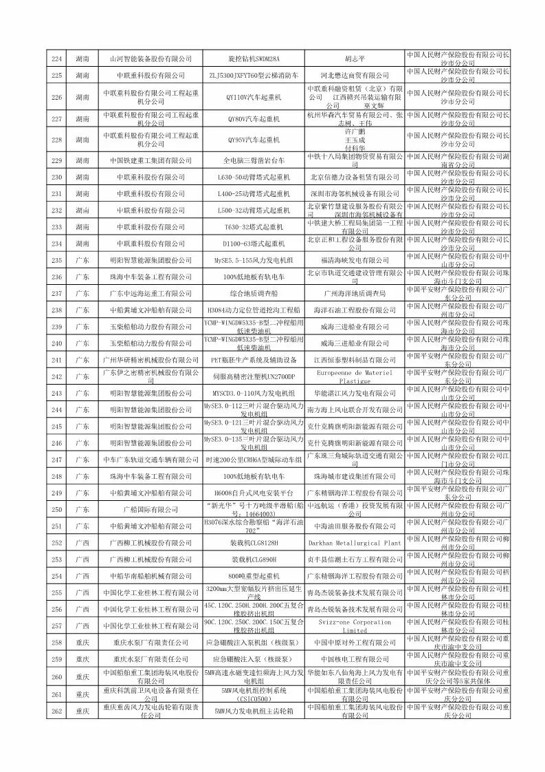 2018年首台(套)重大技术装备保险补偿拟补助项目公示
