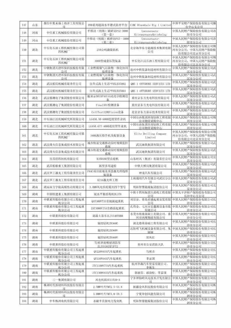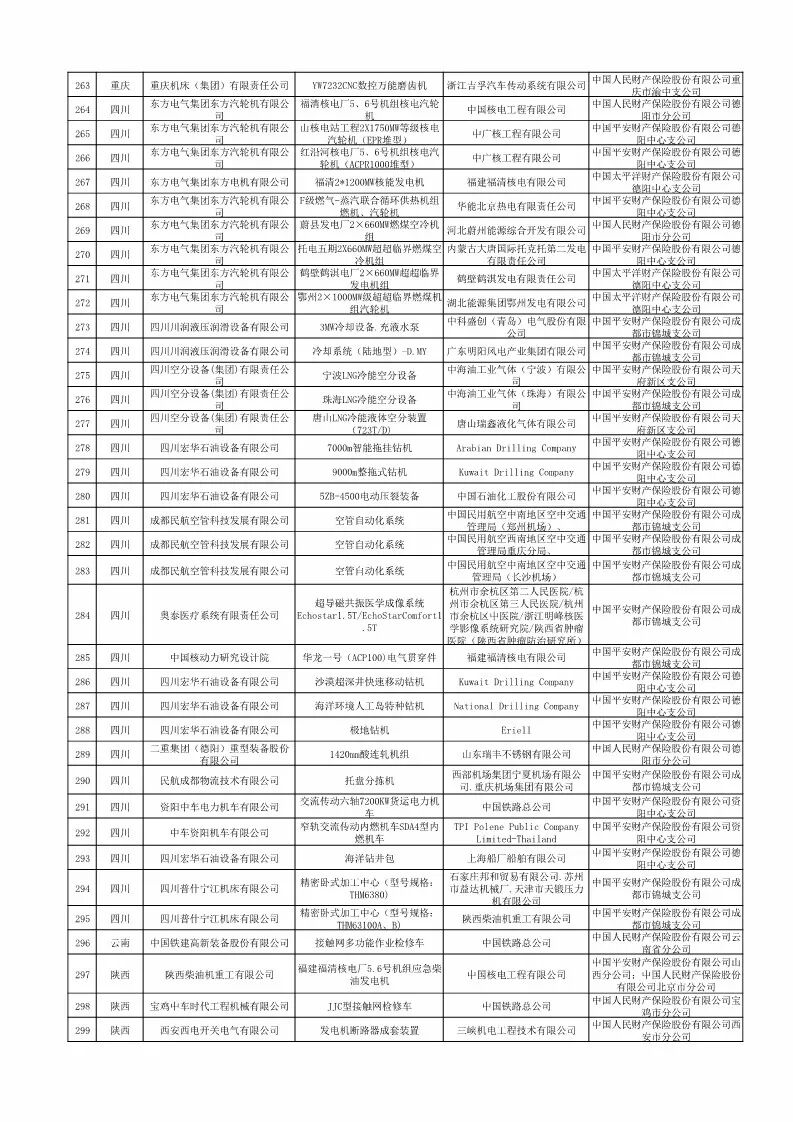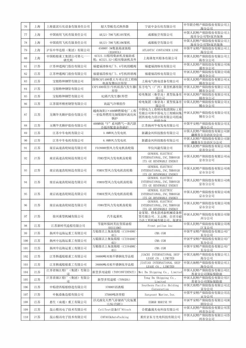 2018年首台(套)重大技术装备保险补偿拟补助项目名单