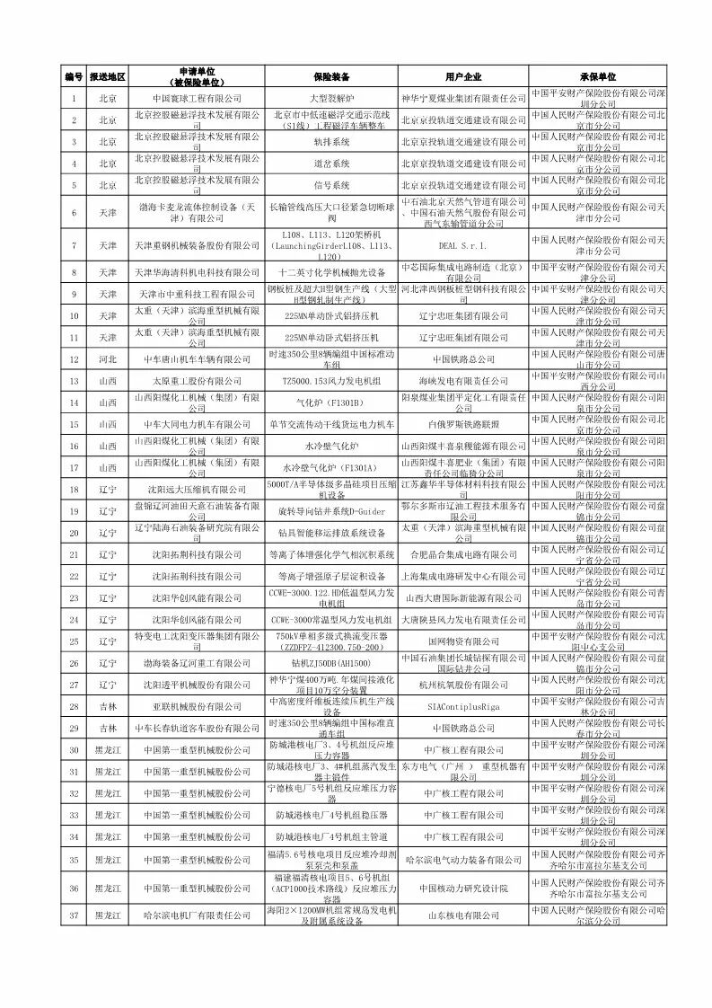 附 件:2018年首台(套)重大技术装备保险补偿拟补助项目名单